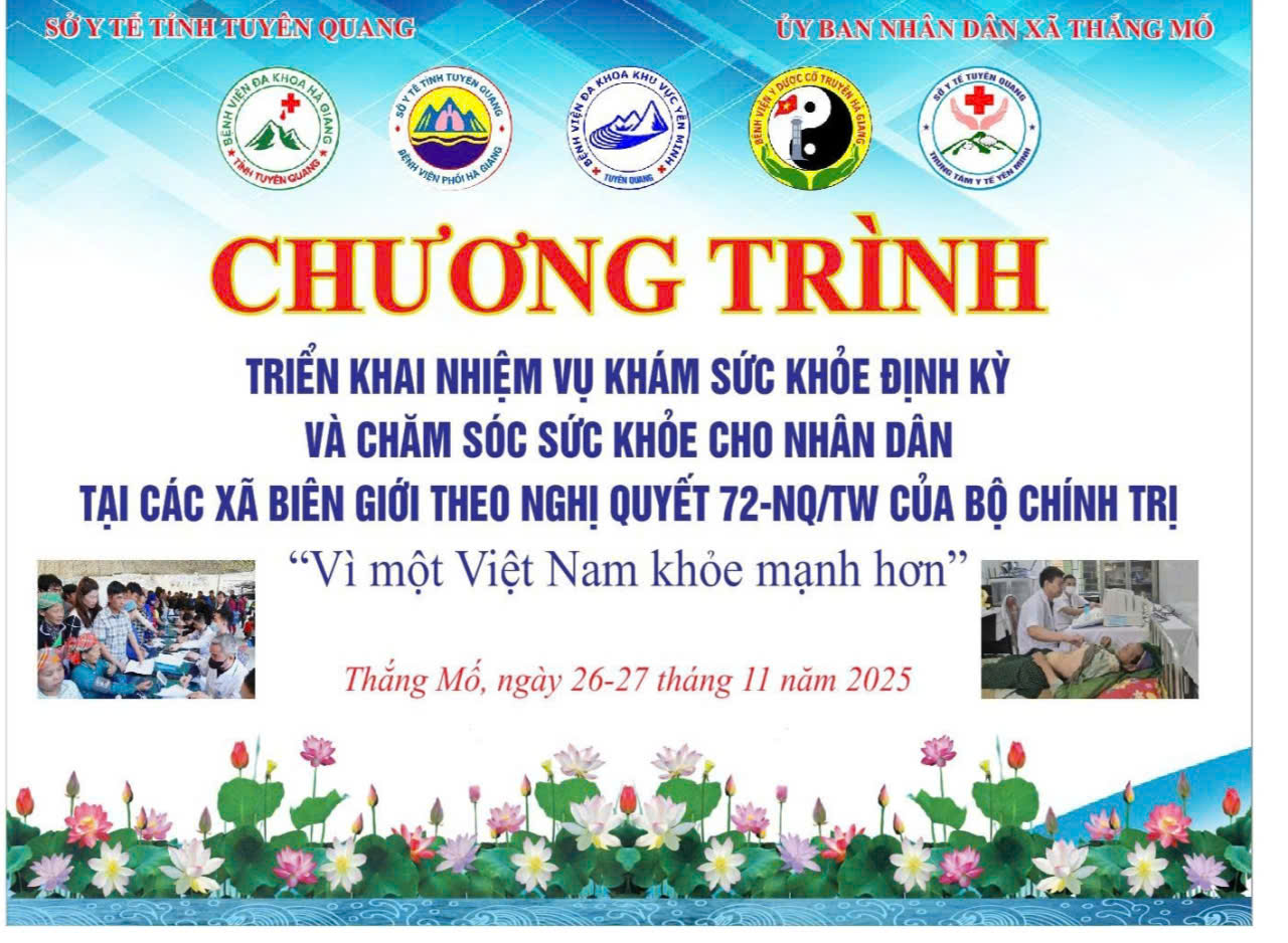 Sáng 26.11. Tại trạm y tế xã Thắng Mố. Sở Y tế tỉnh Tuyên Quang tổ chức chương trình triển nhiệm vụ khám sức khỏe định kỳ và chăm sóc sức khỏe cho nhân dân tại các xã biên giới theo Nghị quyết 72 - NQ/TW của bộ chính trị " vì một Việt Nam khỏe mạnh hơn"./.